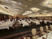 ホテルの方に挨拶をしてから夕食です。きちんと正装(標準服)でナイフとフォークを使って行儀よくおいしい料理をいただきました。